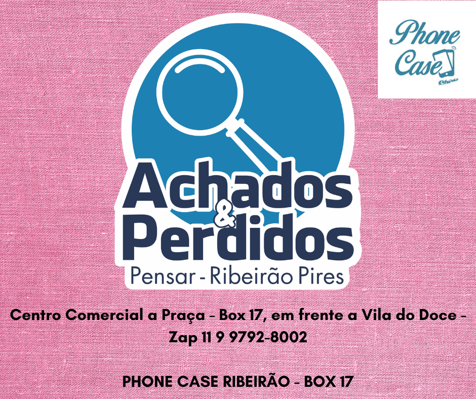 • Perdeu algo? Entre em contato conosco pelo WhatsApp Phone Case Ribeirão Achados & Perdidos (11) 99792-8002 ou visite nosso ponto de coleta na Phone Case Ribeirão, localizada no Centro Comercial A Praça, box 17 (em frente à Vila do Doce).